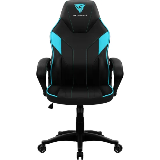 Os apoios de braços macios e acolchoados com design curvo possuem enchimento de espuma fria sólida que fornecem conforto adicional e suporte para seus braços, além de criar um visual elegante e moderno. Fabricada pensando na resistência, possui base forte de nylon, rodas de nylon, que garantem movimentos mais suaves, e moldura de madeira compensada resistente, a EC1 possibilita um suporte estável e confiável já característicos das cadeiras Thunderx3. Modelo: EC1